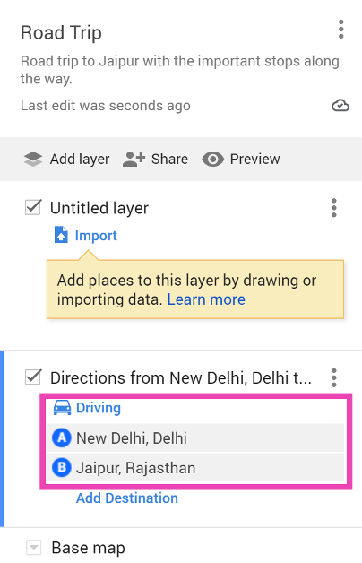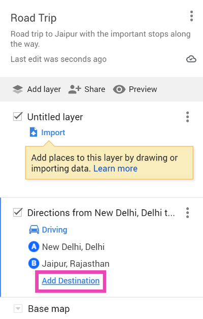 步驟8:您還可以點擊添加目的地在圖層框中並將位置添加到地圖中。