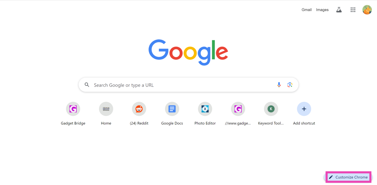 第4步:打開一個新選項卡並單擊自定義 Chrome在屏幕的右下角。