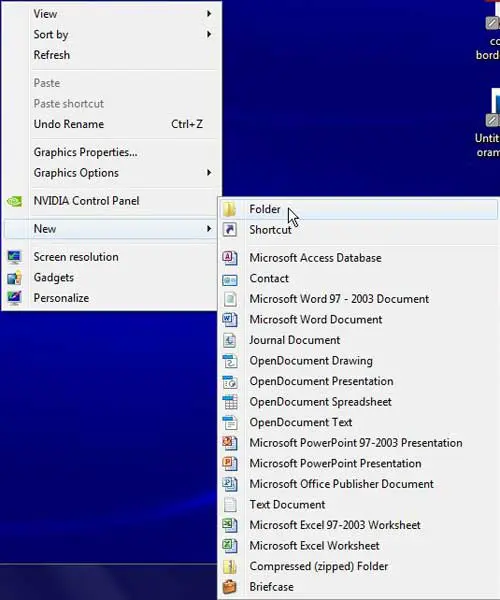 右鍵單擊桌面上的任意空白區域,然後單擊新的,然後單擊文件夾。