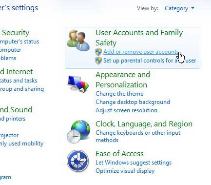 單擊用戶帳戶和家庭安全鏈接