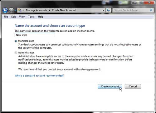 確定最適合新用戶的用戶類型後,您可以按照以下步驟創建 Windows 7 用戶。