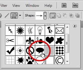 - 右鍵單擊形狀工具並選擇自定義形狀工具。