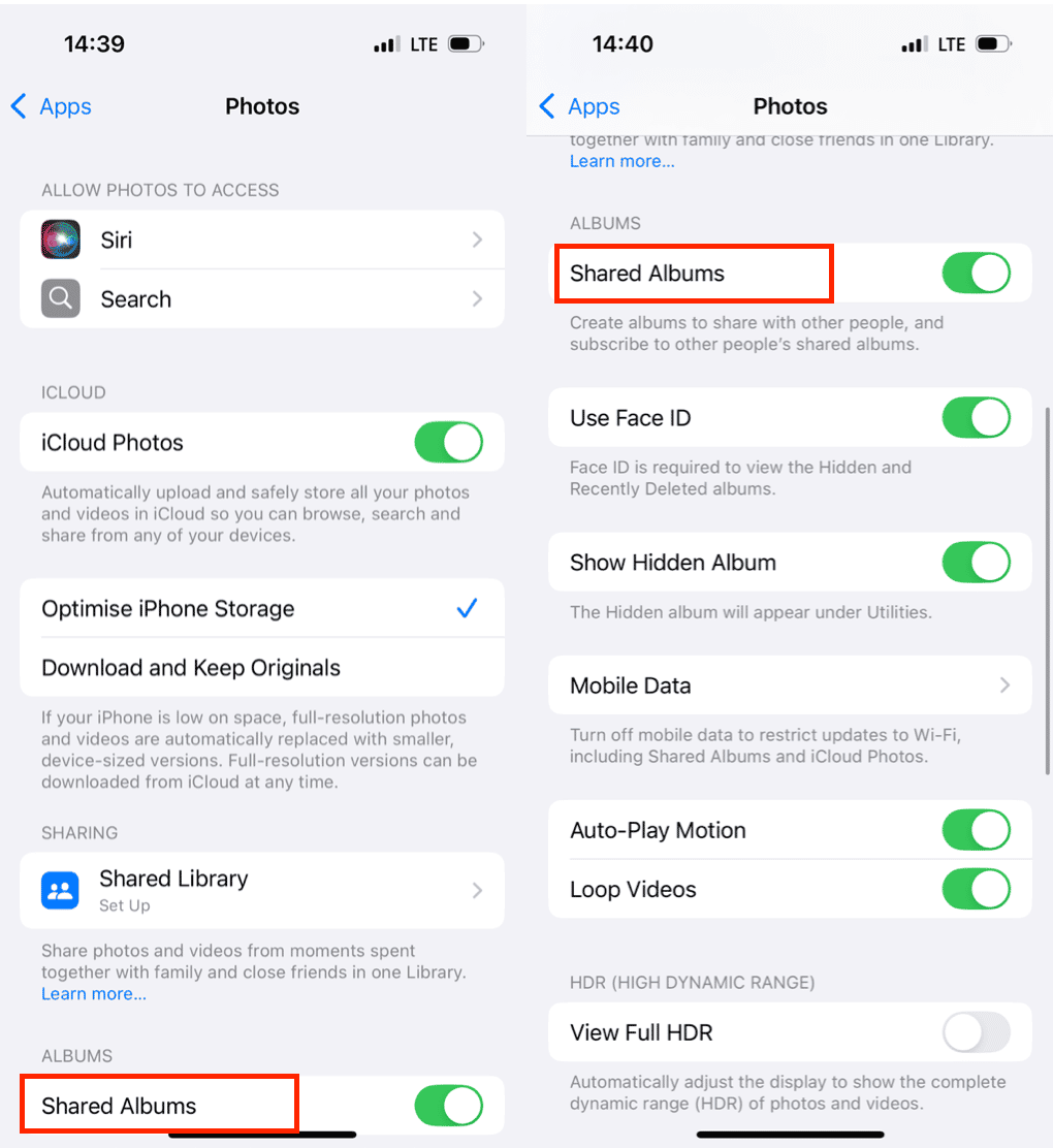 - 點擊可將共享相冊切換至打開位置。