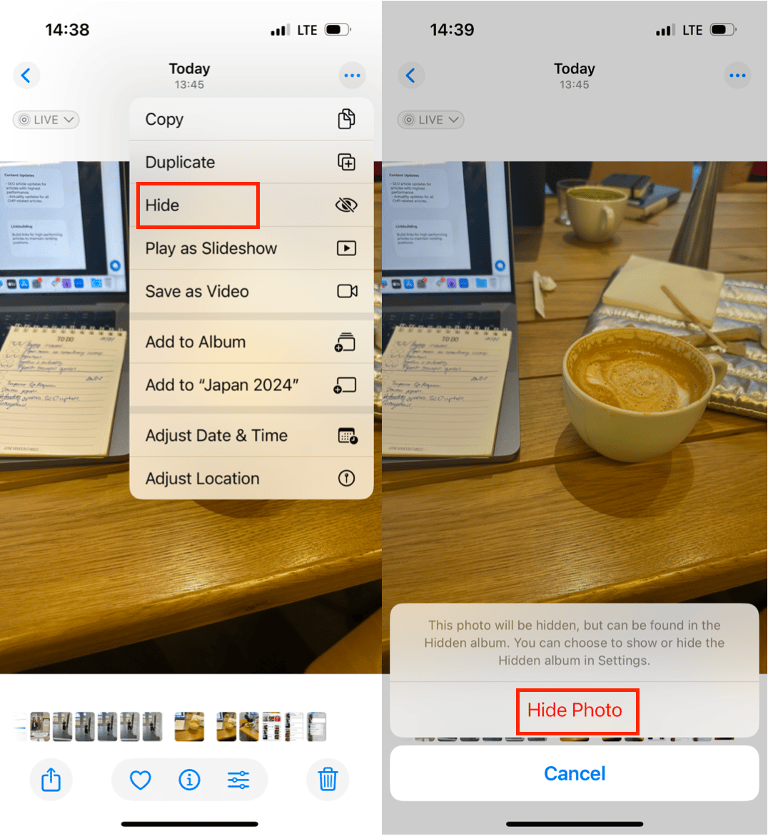 - 返回您的照片應用程序並刪除您要隱藏的照片。