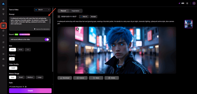 你描述角色的外觀、風格、環境和動作。 Anycreate 將您的描述轉換為完整的動畫動漫視頻。