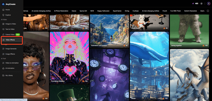 為了快速、時尚的結果,Anycreate 提供固定動漫視頻特效.