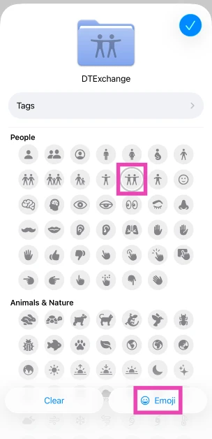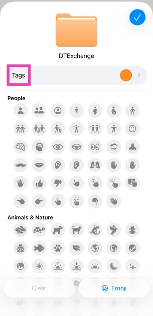 轉到“文件”應用程序,長按一個文件夾,然後選擇“自定義文件夾和標籤”。要更改圖標,請從列表中選擇一個符號,或點擊“表情符號”並選擇一個。要更改顏色,請點擊“標籤”並進行選擇。