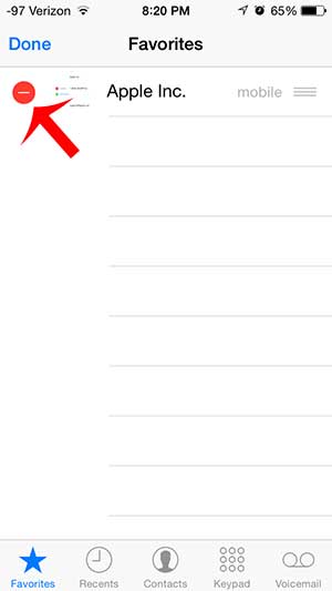 步驟 4:觸摸要從收藏夾中刪除的聯繫人左側的紅色圓圈。