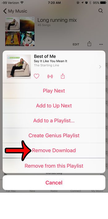 第 4 步:點擊刪除下載按鈕從您的設備中刪除歌曲。請注意,如果歌曲是播放列表的一部分,它將保留在該播放列表中。但是,如果您在連接到蜂窩網絡時收聽該歌曲,則可能需要支付蜂窩數據費率。
