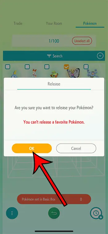 第 7 步:點擊好的確認您希望釋放口袋妖怪。