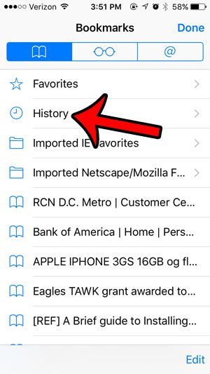 第 3 步:選擇歷史屏幕頂部附近的選項。