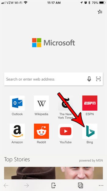 如果您不希望網站圖標出現在該位置,我們下面的教程將向您展示如何從 Edge iPhone 應用程序的新標籤頁中刪除網站圖標。