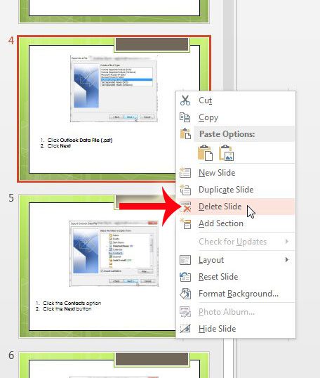 第三步:右鍵單擊要刪除的幻燈片,然後單擊刪除幻燈片選項。