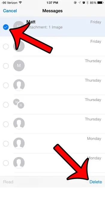下面我們的指南繼續提供有關如何在 iPhone 6 上刪除短信對話的更多信息,包括這些步驟的圖片。