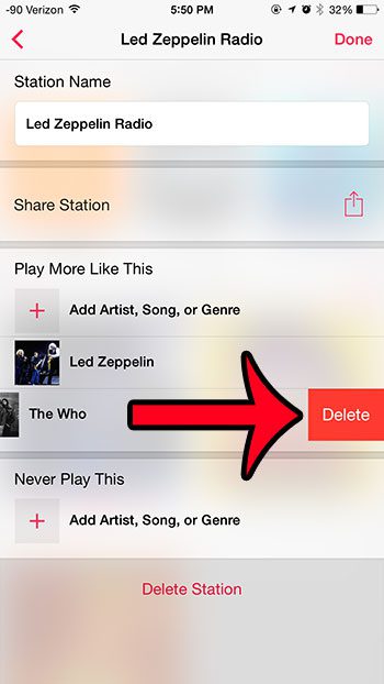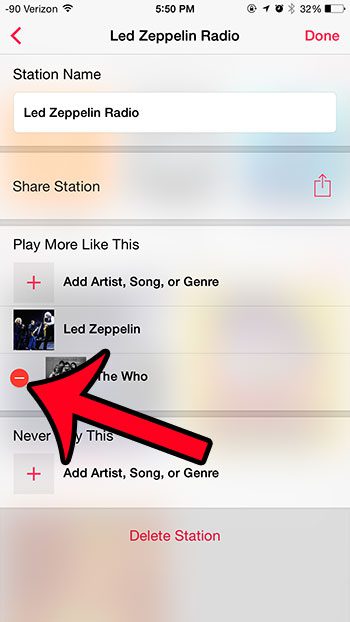 第 7 步:點擊刪除按鈕以確認您希望從電台中刪除該藝術家。