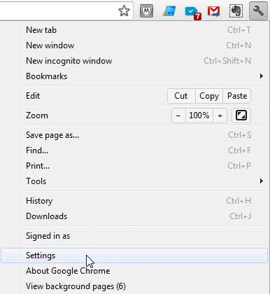 步驟 2:單擊窗口右上角的扳手圖標,然後單擊設定在菜單底部。