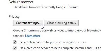 第 4 步:單擊內容設置按鈕在隱私窗口的一部分。