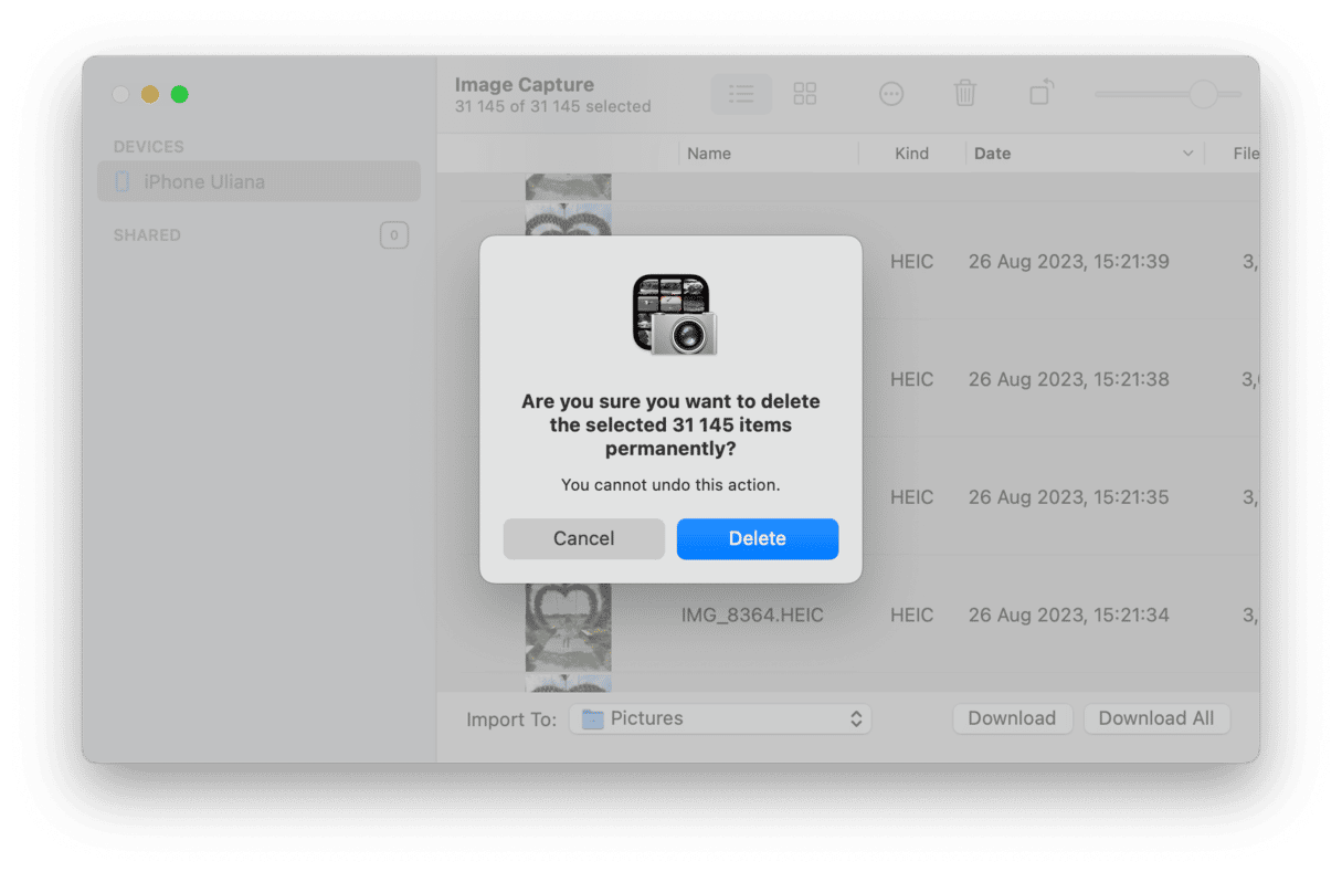 簡單的!不過,您應該記住,“圖像捕捉”會永久刪除照片,而不是將它們移至 Mac 上的“廢紙簍”或 iPhone 上的“最近刪除”,因此只有當您 100% 確定希望照片消失時才使用它。