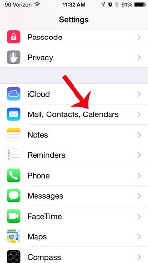 步驟 2:向下滾動並觸摸郵件、通訊錄、日曆按鈕。