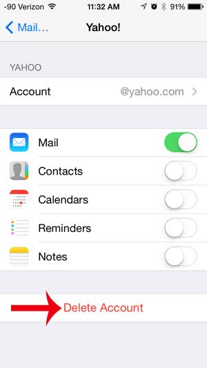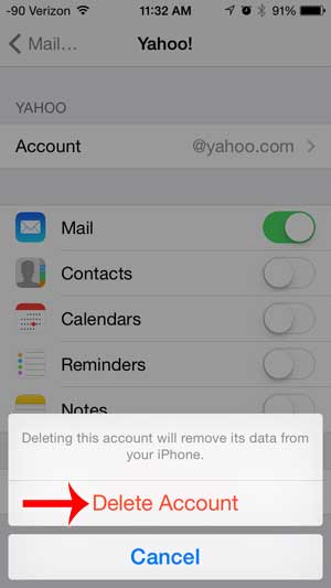 第 5 步:觸摸刪除賬戶再次按鈕以確認您要從 iPhone 中刪除您的 Yahoo Mail 帳戶。