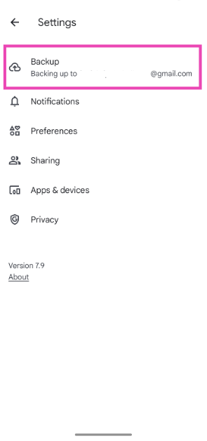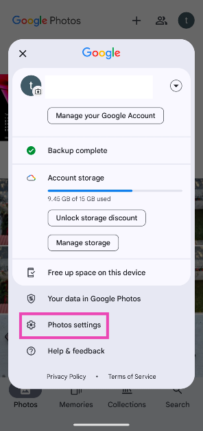 在手機上啟動 Google 相冊應用,點擊您的個人資料照片,轉到照片設置>備份,然後關閉“備份”旁邊的切換開關。
