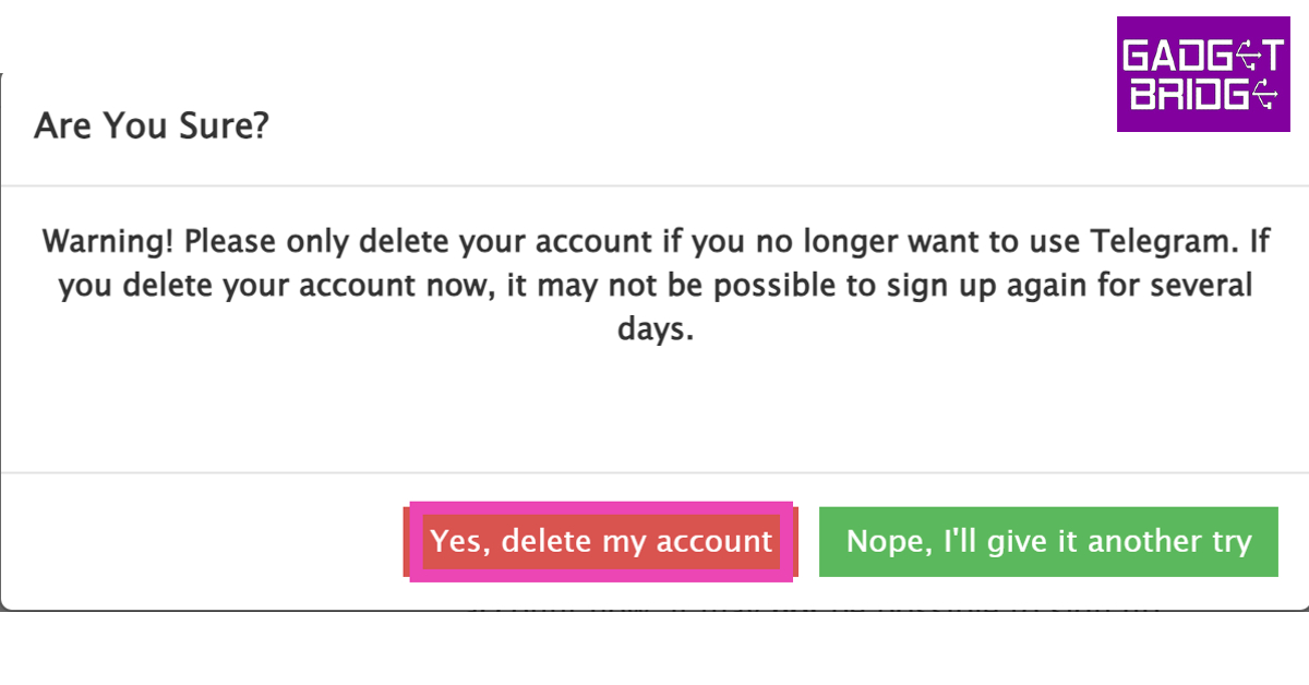 您的 Telegram 帳戶將被永久刪除。