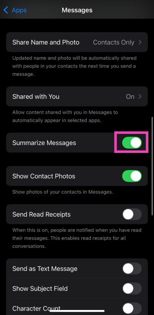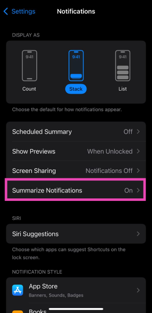 此功能在您的 iPhone 上默認開啟。顧名思義,它會為 iPhone 上收到的通知生成簡短而精確的摘要。如果您覺得此功能使您的通知面板變得混亂,您可以完全關閉它或針對某些應用程序關閉它。