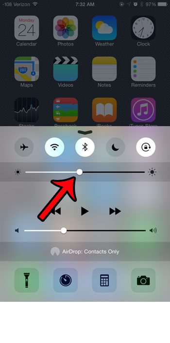 關閉自動亮度功能後,您可以使用按鈕上方的滑塊手動調整亮度級別。您還可以通過從屏幕底部向上滑動來從控制中心訪問此滑塊。