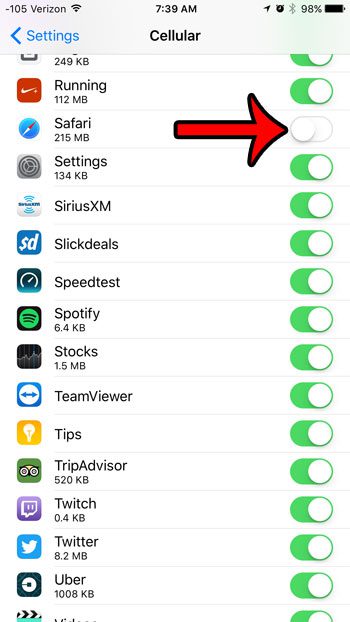 我們的指南在下面繼續提供有關如何禁用單個 iPhone 應用程序的蜂窩數據使用的更多信息,包括這些步驟的圖片。
