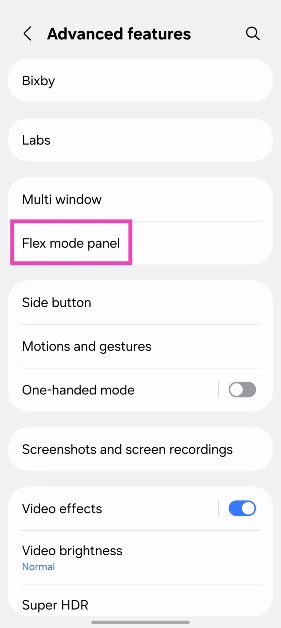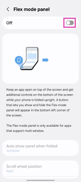 前往設置>高級功能>Flex模式面板>折疊時自動顯示面板,然後打開您首選應用程序旁邊的切換開關。