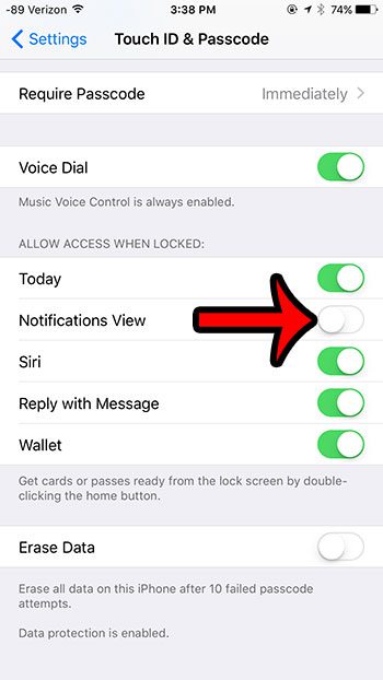 - 向下滾動並關閉通知視圖選項中的鎖定時允許訪問部分。