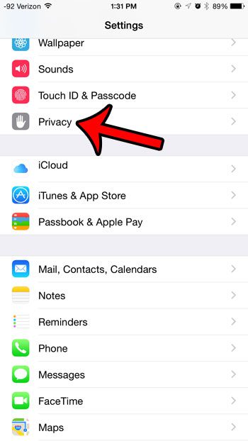 步驟 2:向下滾動並選擇隱私選項。請注意,您還可以選擇通過以下方式訪問此設置iCloud以及。