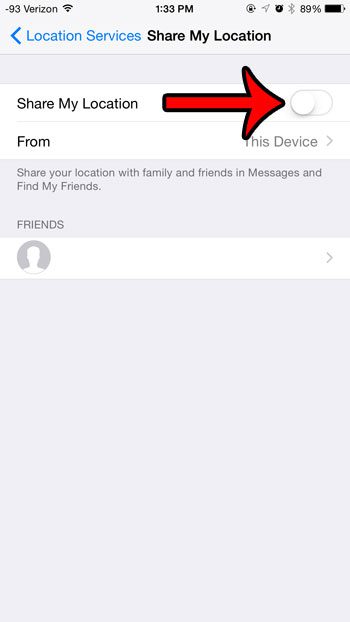第五步:點擊右側的按鈕分享我的位置將其關閉。當按鈕周圍沒有綠色陰影時,您就會知道該功能已關閉。請注意,下圖中它已關閉。