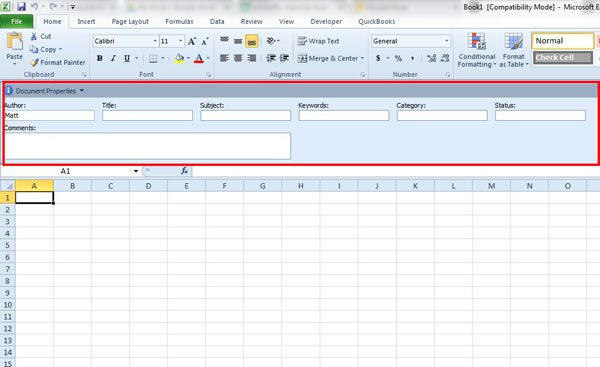 現在您已經知道如何在 Excel 2010 中顯示文檔面板,您可以查看和編輯當前正在編輯的工作簿的該菜單中包含的信息。