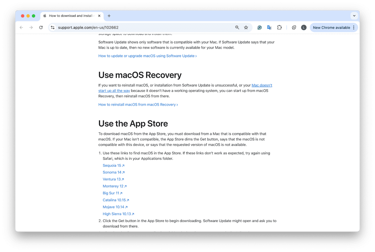 - 向下滾動到“下載 macOS”部分並獲取 macOS Sequoia 鏈接。