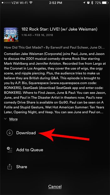 但媒體往往會使用大量數據,在某些情況下,您可能沒有足夠穩定的互聯網連接來允許擴展的流媒體會話。幸運的是,您的 Spotify Premium 訂閱允許您將音頻文件下載到您的設備,包括播客劇集。我們下面的教程將向您展示如何將 Spotify 播客劇集保存到您的 iPhone。