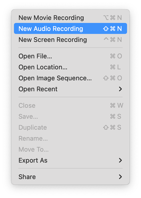 - 返回 QuickTime,單擊“文件”>“新錄音”。