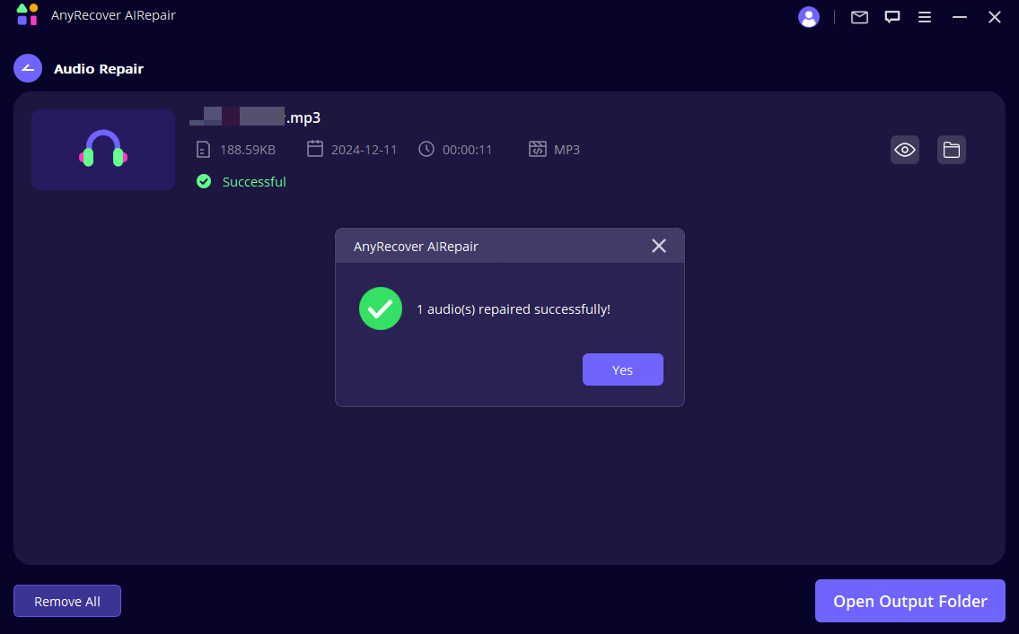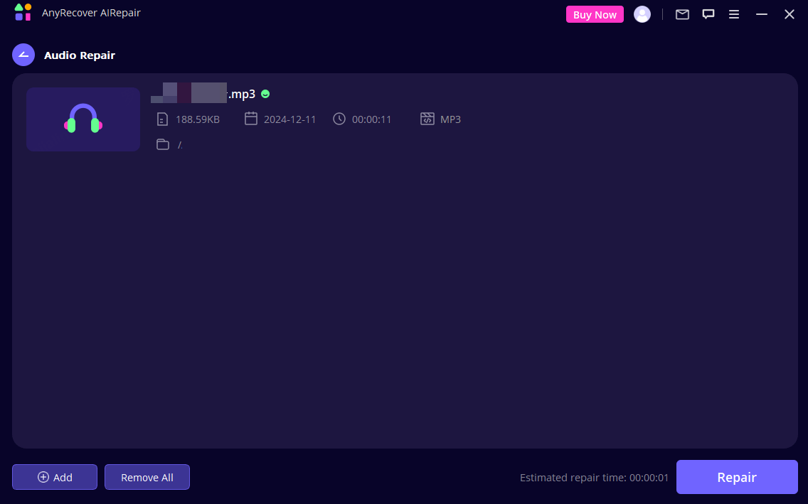 步驟3:打維修,應用程序將修復音頻文件中的任何故障。