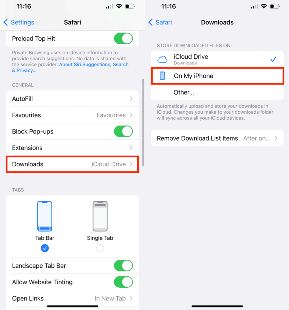 為了本文,Safari將是您的主要應用程序。默認情況下,Safari將下載保存到文件應用程序中,要么將它們直接存儲在您的設備上,要么在iCloud Drive中的下載文件夾中存儲。