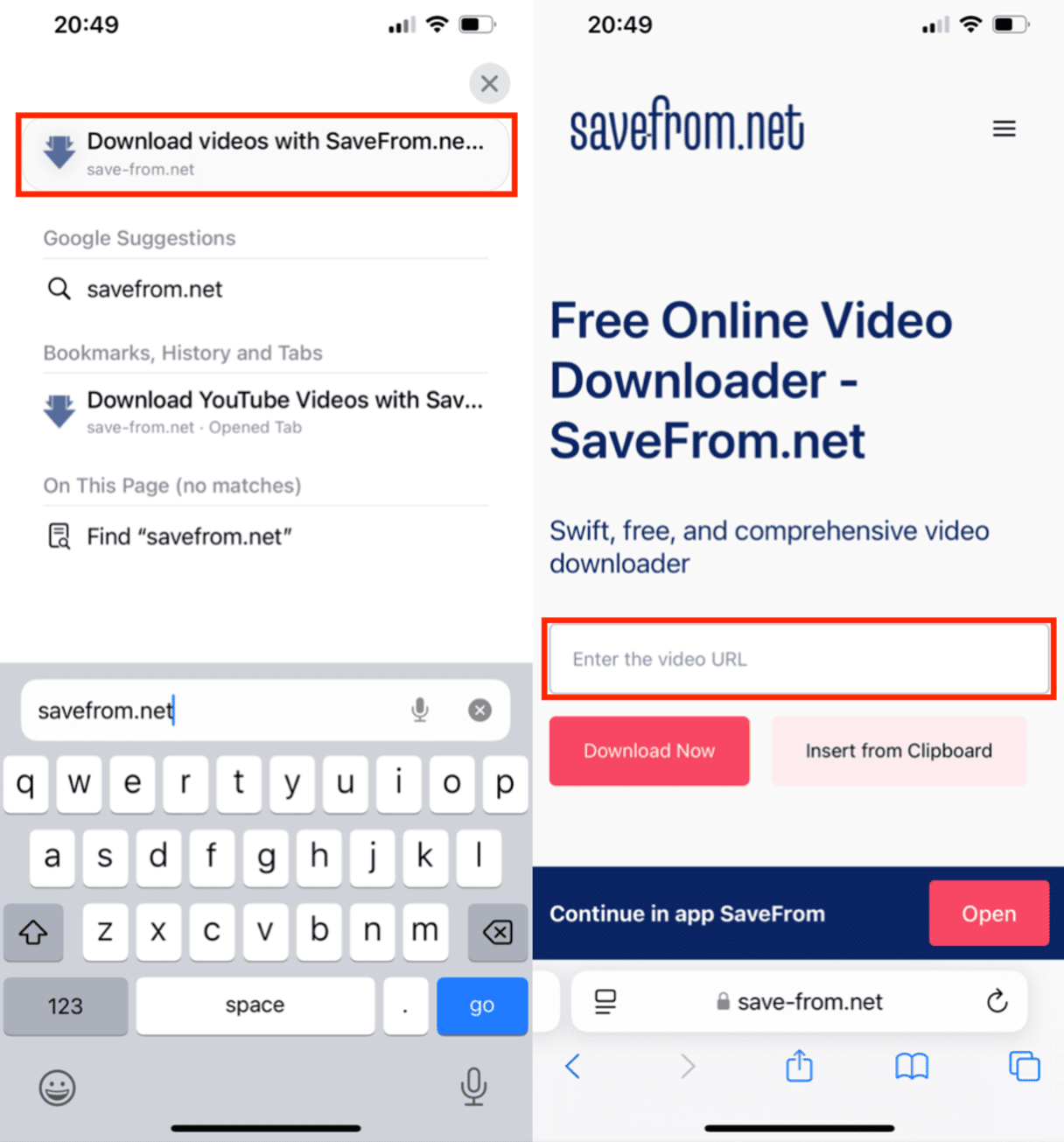 即使Safari和Files是您主要用於下載視頻的應用程序,您也需要使用第三方下載網站,例如SaveFrom.net。由於您無法使用Facebook或YouTube應用程序本地下載視頻,因此本網站將創建一個鏈接以在Safari中下載視頻。 (視頻下載功能已添加到iOS 13中的Safari)。它不那麼優雅,但是有時,將視頻保存到iPhone的唯一方法是在iPhone上錄製它播放剪輯時的屏幕。