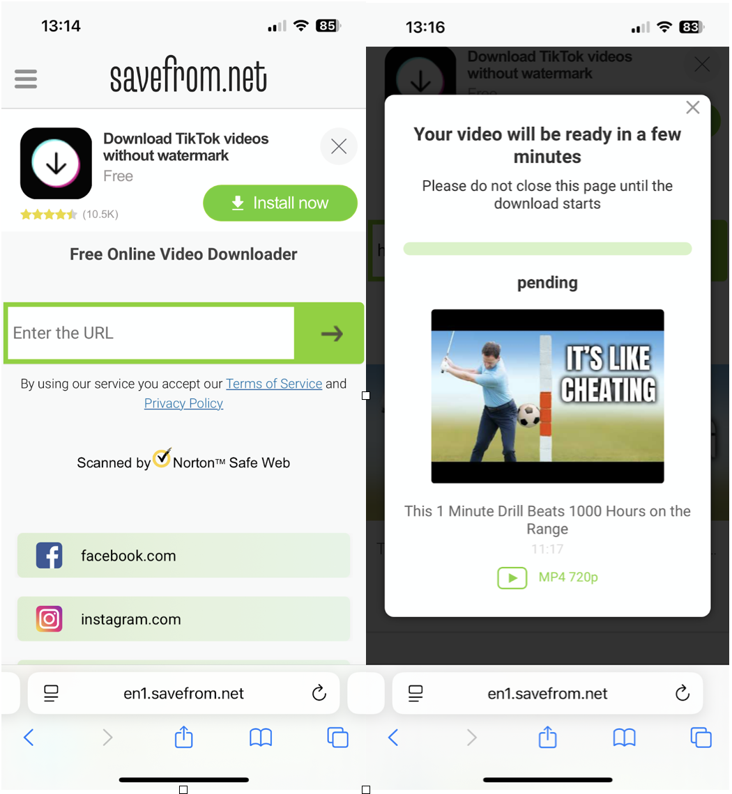SaveFrom.net一直存在,因為它不要求奇怪的權限或嘗試安裝東西。截至 2025 年 6 月,它仍然是 Safari 中實際運行最快的選項之一。