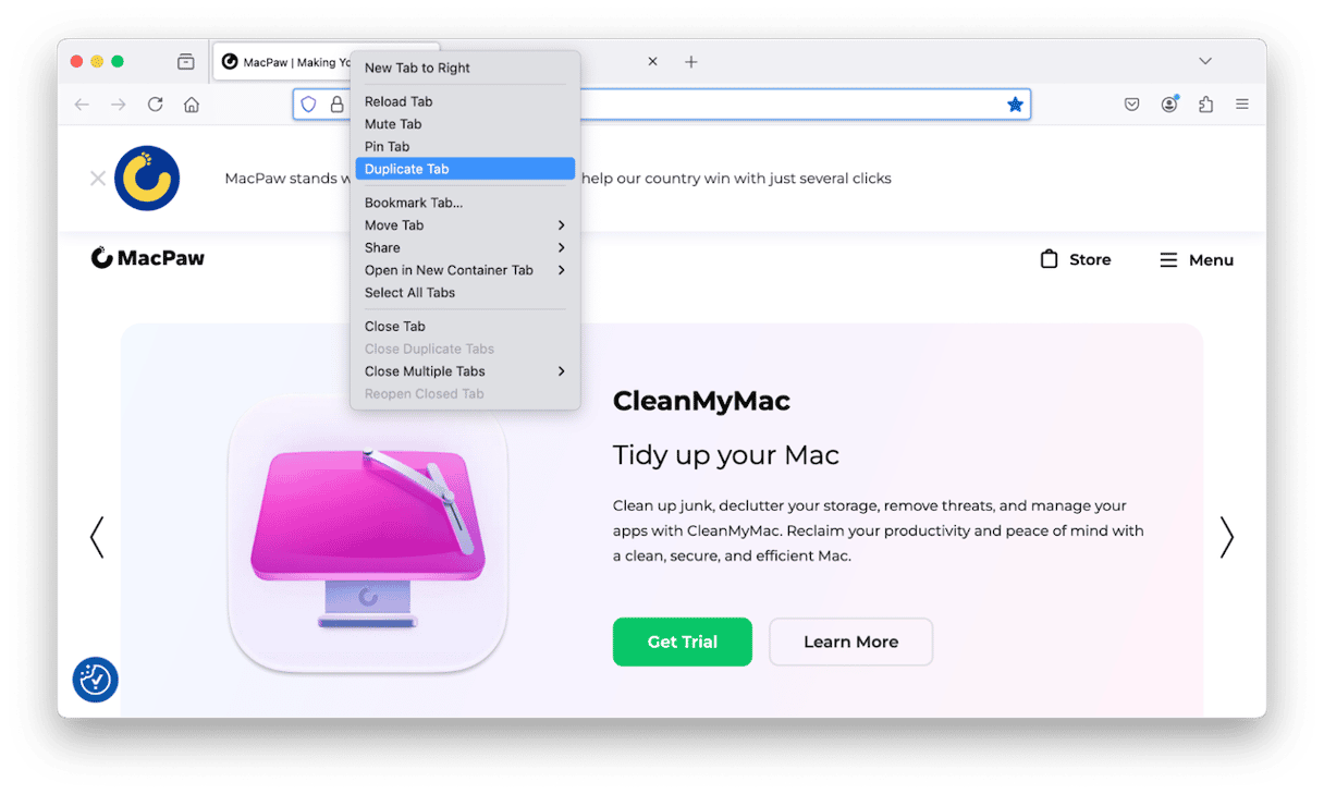 - 單擊選項卡菜單並選擇“複製選項卡”。