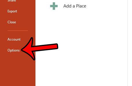 第 3 步:單擊選項按鈕位於窗口左側列底部。這將打開一個新窗口,標題為幻燈片選項。