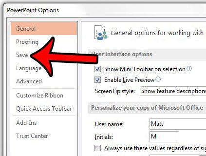 第 4 步:單擊節省左側的選項卡幻燈片選項窗戶。