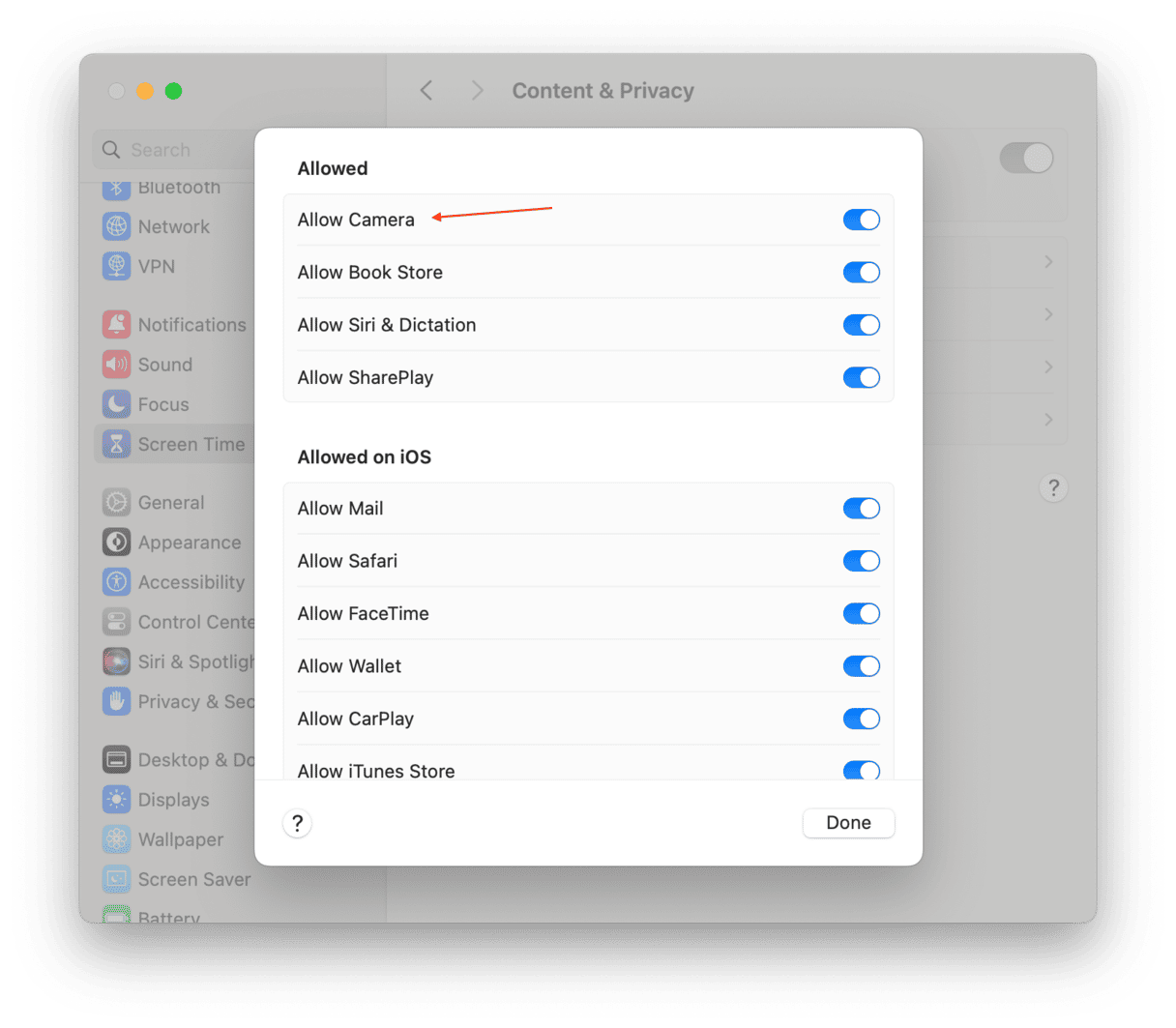 較新的 macOS 版本讓家長感覺更安全,為他們提供了更多阻止內容和功能的方法。這還包括相機。許多用戶不知道,“屏幕時間”窗口的作用不僅僅是限制互聯網時間。