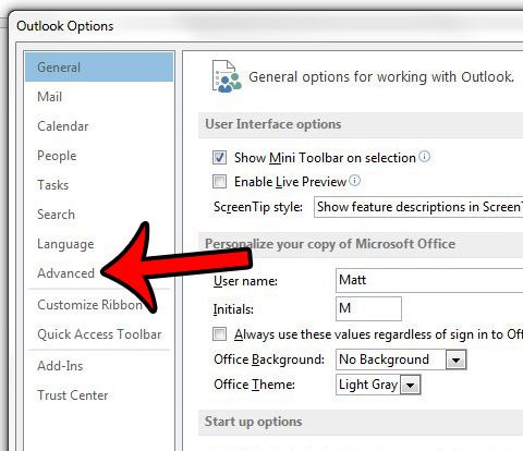 第 4 步:單擊先進的左側的選項卡展望選項窗戶。