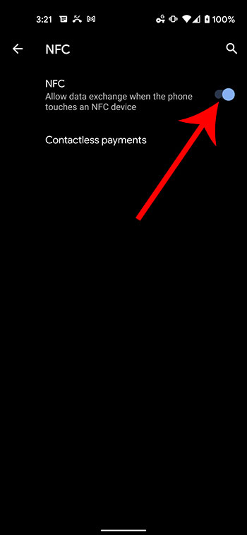 請注意,它表示 NFC 功能的當前設置。我已經打開了,如下圖所示。