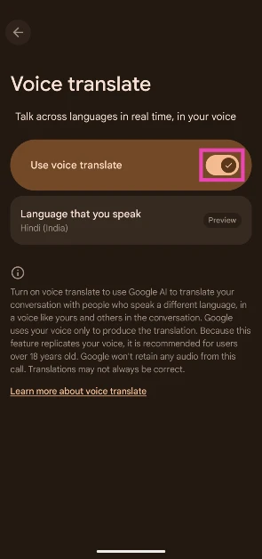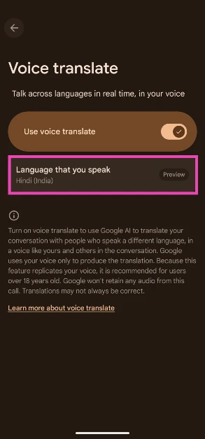 Google 原生電話應用程序的語音翻譯功能僅適用於 Pixel 10 及更高版本的智能手機。其他原始設備製造商(例如三星)也有自己的實時翻譯功能。