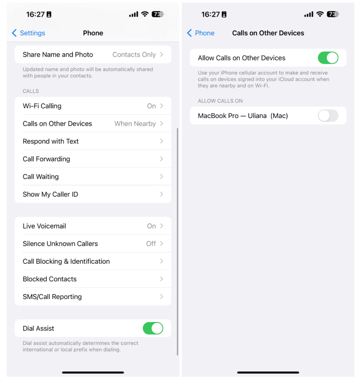 - 切換“允許在其他設備上通話”。