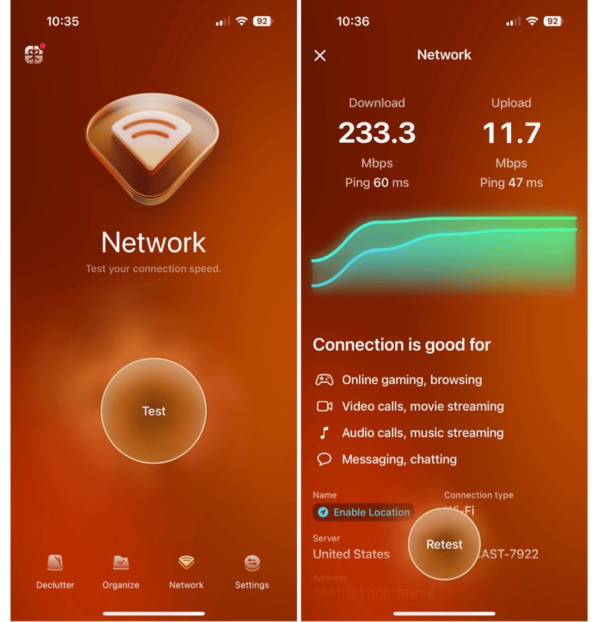 要通過 Wi-Fi 進行音頻通話,您的下載和上傳速度應至少為 2Mbps(兆位每秒),因此下一步是測試您的網絡速度。您可以使用許多工具,但我們建議使用 CleanMy®Phone。